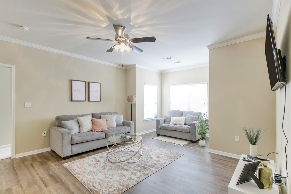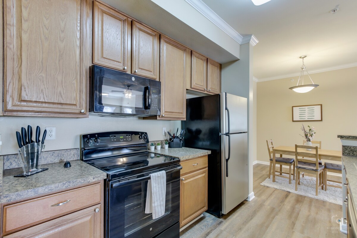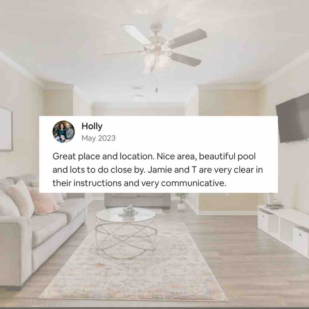 Parties: $500 fine. Smoking (of any kind, including vaping): $200 fine + any other fees for damages. The maximum occupancy limit is 6. Extra Guests: Any extra guests staying the night are considered trespassers. There will be a $75 fine per person/per night for every person that is not on the reservation. Excessive Noise: First notification= warning, Second notification= Cancellation of reservation without refund. Quiet hours are from 10 pm-6 am. There is a Video Doorbell Camera & Excessive Noise Detector. Device Tampering: $250 fine. Disconnecting the device/wifi will result in the cancellation of your reservation without refund. Blocking the video doorbell camera to allow extra guests to enter the property will automatically lead to cancellation of your reservation without refund. Excessive Trash: $100 additional cleaning fee- No glitter, Silly String, Confetti, Hair Dye, or Bleach- Will result in an additional $150 cleaning fee + any damages. Do not move or disassemble furniture or décor. The host and/or maintenance team will request to enter the property should any maintenance concerns be brought to our attention. You will be notified ahead of time if entrance is needed. Two parking passes will be provided and need to be immediately hung from your rearview mirror in order to prevent you from being towed. The hosts nor the complex will be held responsible if your vehicle is towed. Do not park in covered, reserved or handicapped spots. If you do and you are towed, it will be at your own expense. There is a $50 charge for each parking pass that isn’t returned when you leave. A key fob will be provided to gain access to the pool area and gym. If it is lost or damaged, there will be a $200 fee. $150 fee for every tv remote that isn’t returned upon checkout. Due to safety reasons, all fireplaces are off limits. No third-party bookings allowed. The only person that can check-in is the person that booked the reservation. The person on the reservation will be held responsible for all charges and any damages incurred during the course of your reservation, and there will be no chargeback awarded at any time. Your checkout time is 11 am. Failure to checkout on time will result in a fee of $250 and this fee does not award you an additional night. You will be considered trespassing if you stay 10 minutes past your checkout time. We request that locals contact us prior to booking. You recognize that by booking with us you agree to all of the rules, guidelines, and policies shown within the listing, terms of the lease, and complex policies, and that failure to follow these things could result in cancellation of your reservation without refund. You recognize that you are staying here as a guest, and there is no tenant/landlord relationship. We do not allow mail to be forwarded or packages to be delivered. (If you book and confirm your reservation AFTER 1pm central the day before your official check in day, your check in time may be delayed. Our cleaners lock in their schedule by 1pm each day and listings that are set to be VACANT by that 1pm deadline will be on the back of their schedule. This is just a precautionary and a proactive measure.)