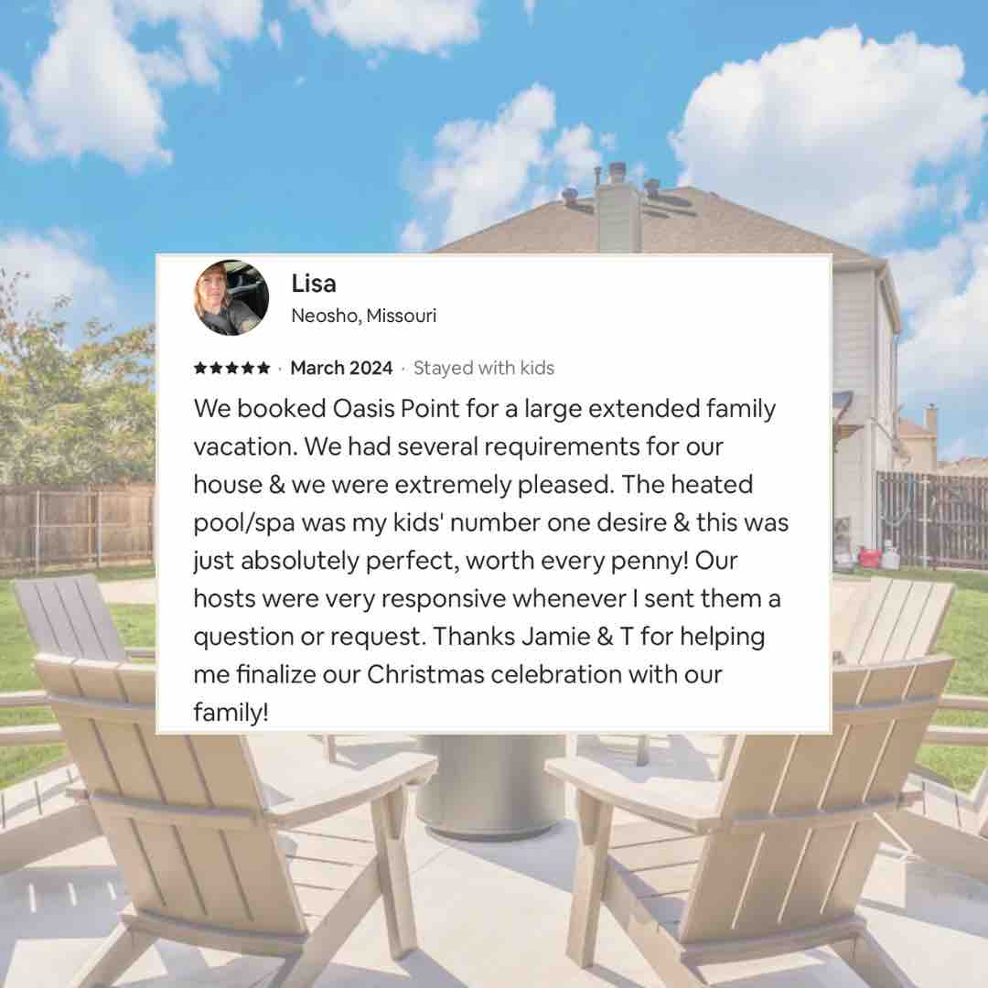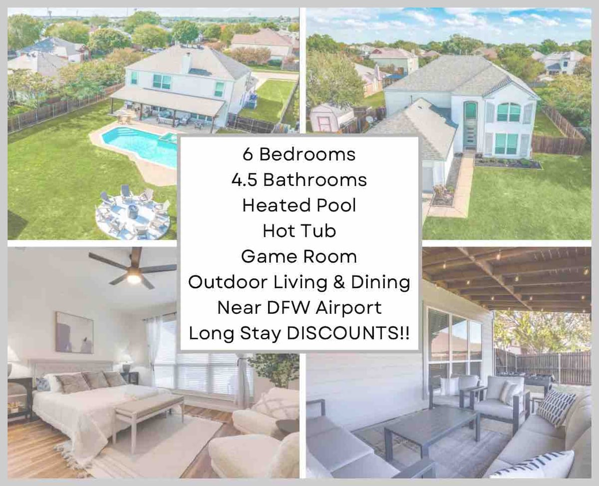 Lake DallasExperience the ultimate vacation at Oasis Pointe! This 6-bedroom home accommodates 14 guests, with 2 king bedrooms, 4 queen bedrooms, 4.5 bathrooms, a heated pool, hot tub, and a game room. Conveniently located near Frisco, Plano, and DFW Airport. Stay 5 nights or longer for an extended stay discount! Check out our other nearby listings at http://www.airbnb.com/p/jamieandttx if this isn’t quite what you’re looking for. We’ve got many other nearby options, including one just 5 minutes away.
